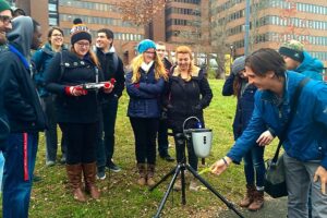 Geomatics students measuring leaf reflectance in the GEOM 3002 Remote Sensing Course
