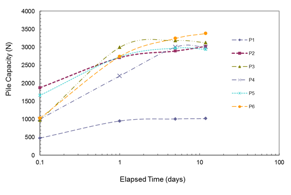 This increase in pile capacity is not incorporated in current pile design procedures due to a lack of a full understanding of the gain mechanisms and how several factors such as soil type, pile material and its installation method affect capacity gain. This project studies the pile capacity increase in soft and sensitive clays to develop a relationship between the pile capacity and elapsed time after initial installation.