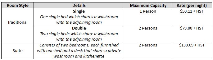 There are many other hotels in the downtown Ottawa area and a few B&B and Air BnB options closer to campus. Finally attendees may stay at the Carleton residence and receive a free breakfast (see table below for rates) (registration: http://conferenceservices.carleton.ca/accommodations/individual-guests/).