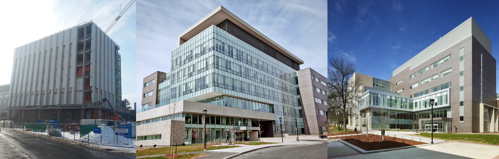 Three buildings that we study intensively. From left: Health Sciences Building, River Building, Canal Building.