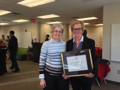Carleton History Professor Susanne Klausen receives a 2016 university Research Achievement Award at the annual awards ceremony held on Tuesday, April 19.