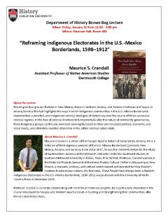 The History Department invites you to a talk by Maurice Crandall from Dartmouth College, as part of our Friday Brown Bag Talks. Bring your lunch and join us in the History Department Lounge, 433 Paterson, at 12:30 pm.