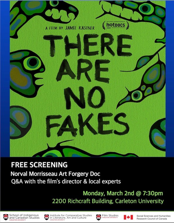 Dr Carmen Robertson (Canada Research Chair in North American Art & Material Culture) will be hosting a screening of “There Are No Fakes” — the acclaimed new Canadian film that documents the widespread forgery of works by iconic Anishinaabe artist Norval Morrisseau. The screening will take place on campus on Monday, March 2nd at 7:30 p.m. in the Richcraft Theatre (Richcraft Hall 2200) and will be followed by a panel discussion with the film’s director, Jaimie Kastner, and Morrisseau scholars Drs Ruth Phillips and Carmen Robertson. Free admission — all welcome!