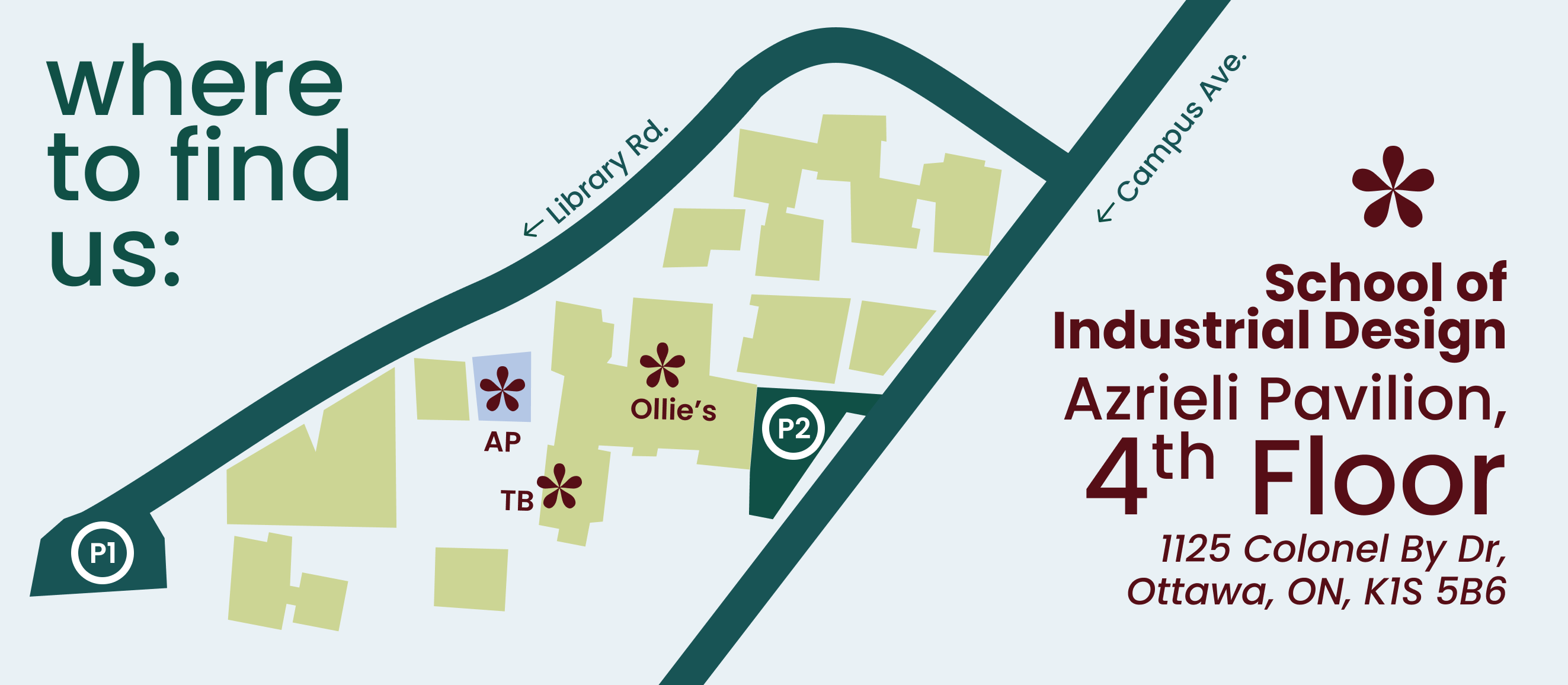 As a hub of innovation and creativity, the School of Industrial Design at Carleton University is committed to leading sustainable practices and addressing climate change through design. We have committed to changing the impact of our show through the design of high-quality exhibit materials reworked from existing items from within the school, and reducing the need for single-use materials as much as possible.