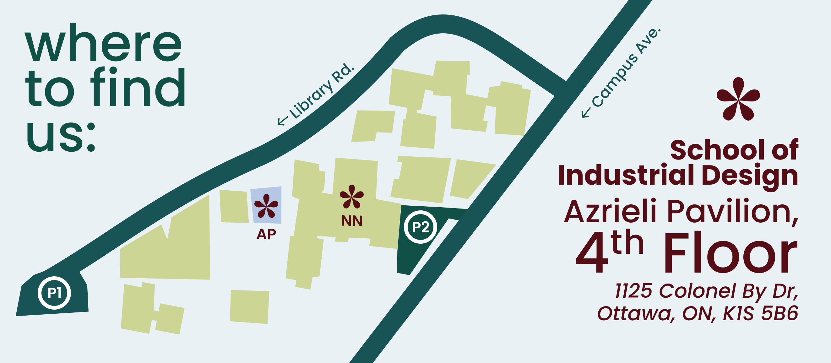 As a hub of innovation and creativity, the School of Industrial Design at Carleton University is committed to leading sustainable practices and addressing climate change through design. We have committed to changing the impact of our show through the design of high-quality exhibit materials reworked from existing items from within the school, and reducing the need for single-use materials as much as possible.