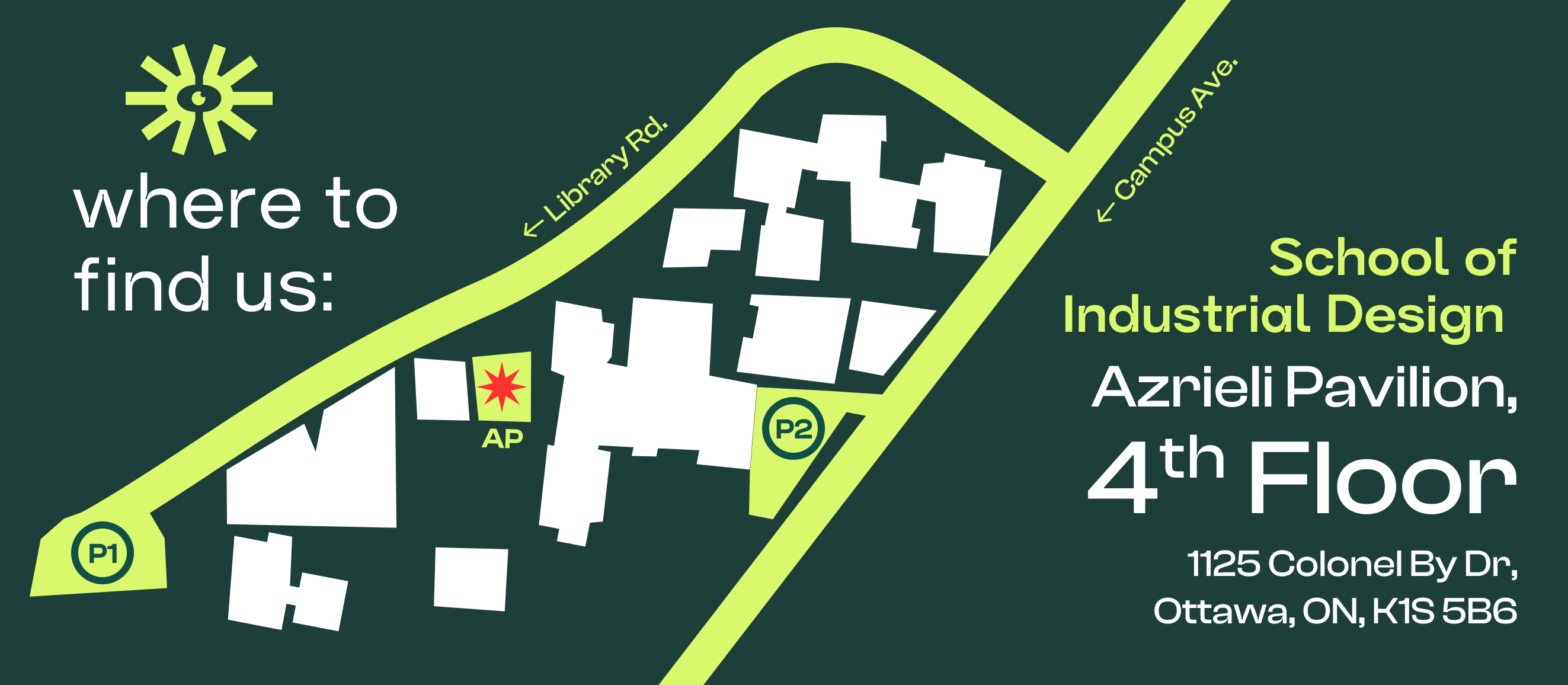 As a hub of innovation and creativity, the School of Industrial Design at Carleton University is committed to leading sustainable practices and addressing climate change through design. We have committed to changing the impact of our show through the design of high-quality exhibit materials reworked from existing items from within the school and reducing the need for single-use materials as much as possible.