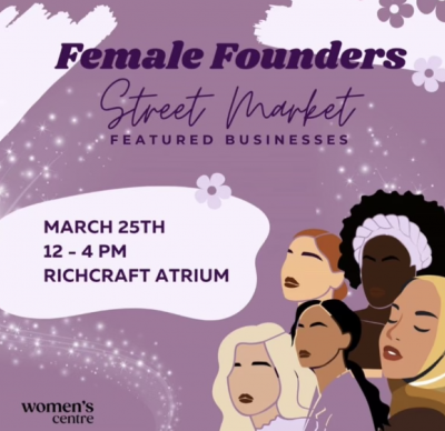 The Innovation Hub is excited to be partnering with CUSA Women’s Centre and CUSA to bring back the Female Founders Street Market this year! Join us on March 25th, 2024 from 12:00 pm – 4:00pm right on campus in the Richcraft Atrium. The event will feature 21 women-owned businesses, henna artists (free henna!), live music, giveaways, and more!