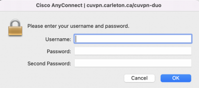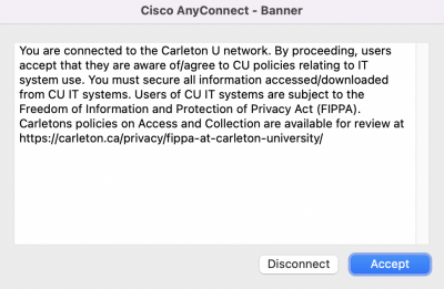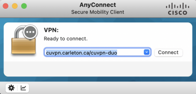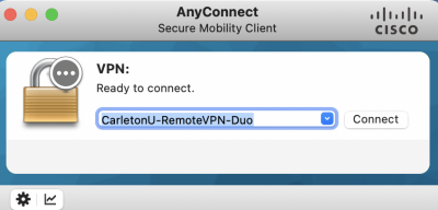 The Virtual Private Network (VPN) client software is required for access to Carleton University resources that are restricted to on-campus use. It provides a secure encrypted channel from your home to the campus and allows access to many campus resources.