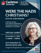“Were the Nazis Christians?” is a special guest lecture taking place as part of Prof. Megan Hollinger’s course. Guests are welcome to join in on this online (zoom) lecture.