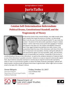 JurisTalk | Oct 13th – Prof. Zoran Oklopcic – Catalan Self-Determination Referendum: Political Drama, Constitutional Standoff, and the Tragicomedy of Theory