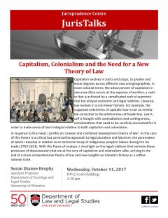 JurisTalk | Oct 11th – Prof. Susan Brophy – Capitalism, Colonialism and the Need for a New Theory of Law