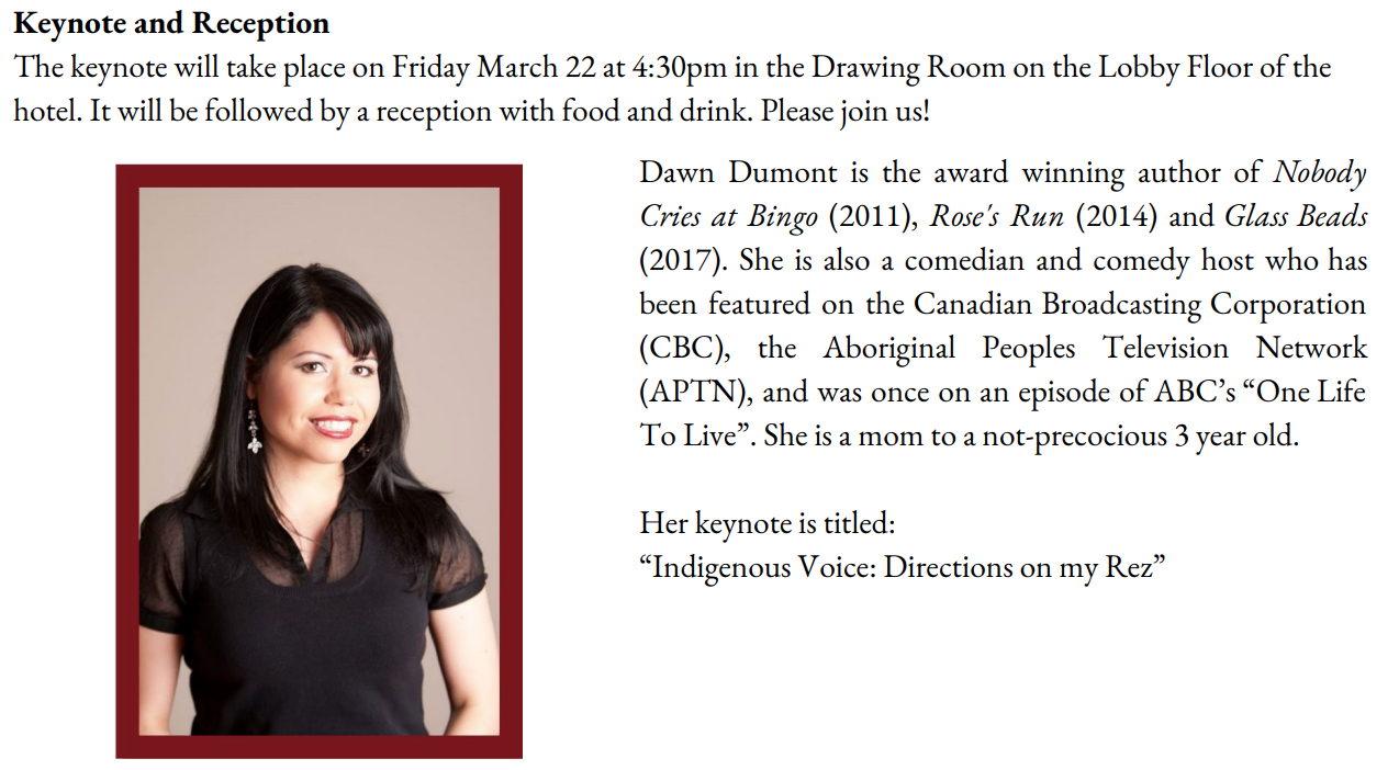 Registration will take place in the Quebec Suite Foyer on the First Floor of the hotel on Friday, March 22 from 8am-4pm and Saturday, March 23 from 9am-12:30pm. You will be provided with a name tag to access all sessions (as well as Ottawa tourist sites – see below), a condensed version of the program and a drink ticket for the reception. Those that have not registered will be asked to do so on-site at the registration table (tablets and computers will be available).