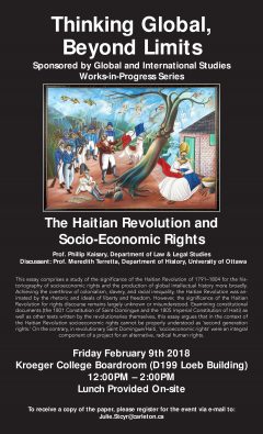 Professor Phillip Kaisary of the Department of Law & Legal Studies will be presenting his essay titled “The Haitian Revolution and Socio-Economic Rights” on Friday, February 9th, in D199 Loeb Building.