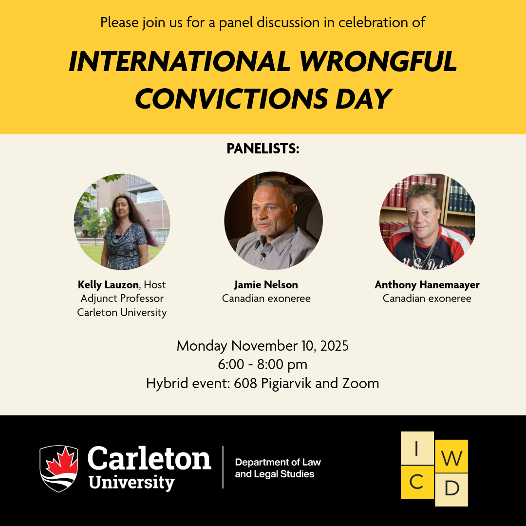 We will hear the stories of Canadian exonerees Jamie Nelson and Anthony Hanemaayer. More details about our speakers can be found below.