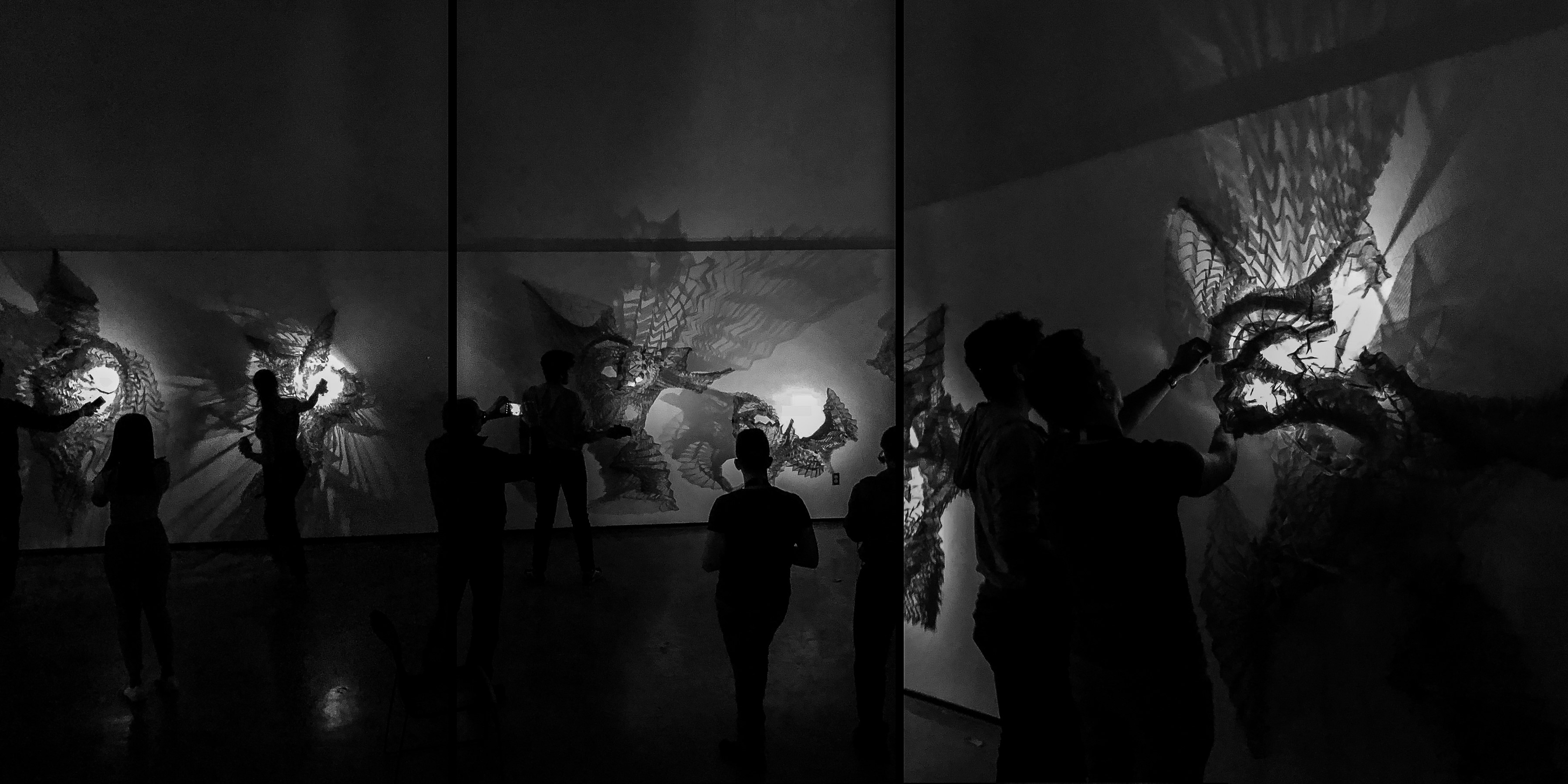 Diluvio: Teatro delle Ombre (Deluge: Theatre of Shadows) is part of Cinquecento: Carleton Celebrates Leonardo da Vinci, the 2019 year-long initiative commemorating the 500th anniversary of Leonardo’s death. This interactive and immersive exhibition is the final phase of the Diluvio installations featuring the work of students from the Fall 2018 and Summer 2019 Crossings Interdisciplinary Workshop, offered by Professor Manuel Báez. The new participatory immersive exhibition is inspired by Leonardo’s Deluge drawings and correlations between his insightful reflections regarding visual perception and Plato’s Allegory of the Cave.