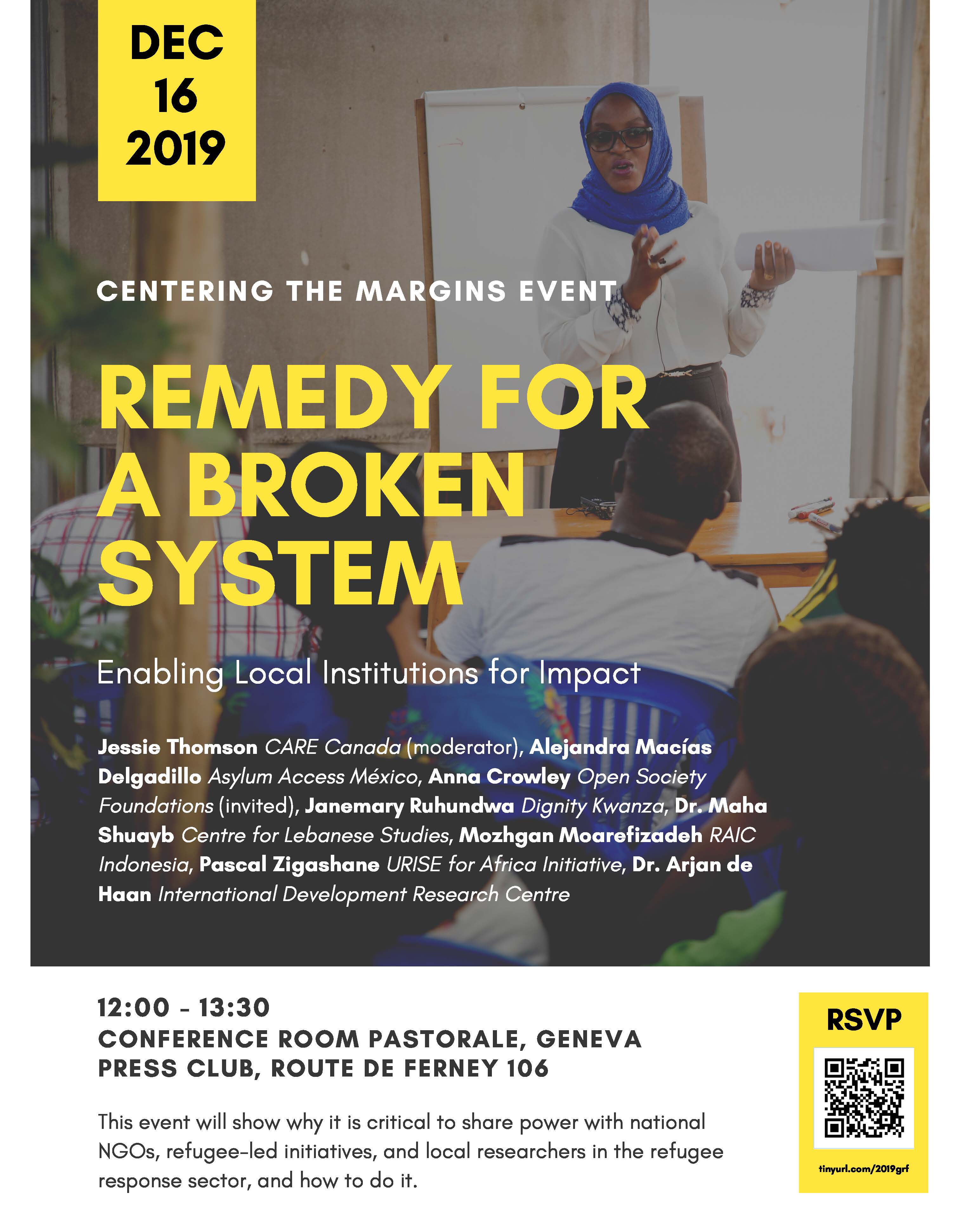 The event built from commitments made to the localization of humanitarian action, stemming from the 2016 World Humanitarian Summit, the Grand Bargain commitments, the 2016 New York Declaration and the 2018 Global Compact on Refugees. While there remains a commitment to work more substantively through local actors – national NGOs, refugee-led initiatives, and national academics – significant barriers remain.