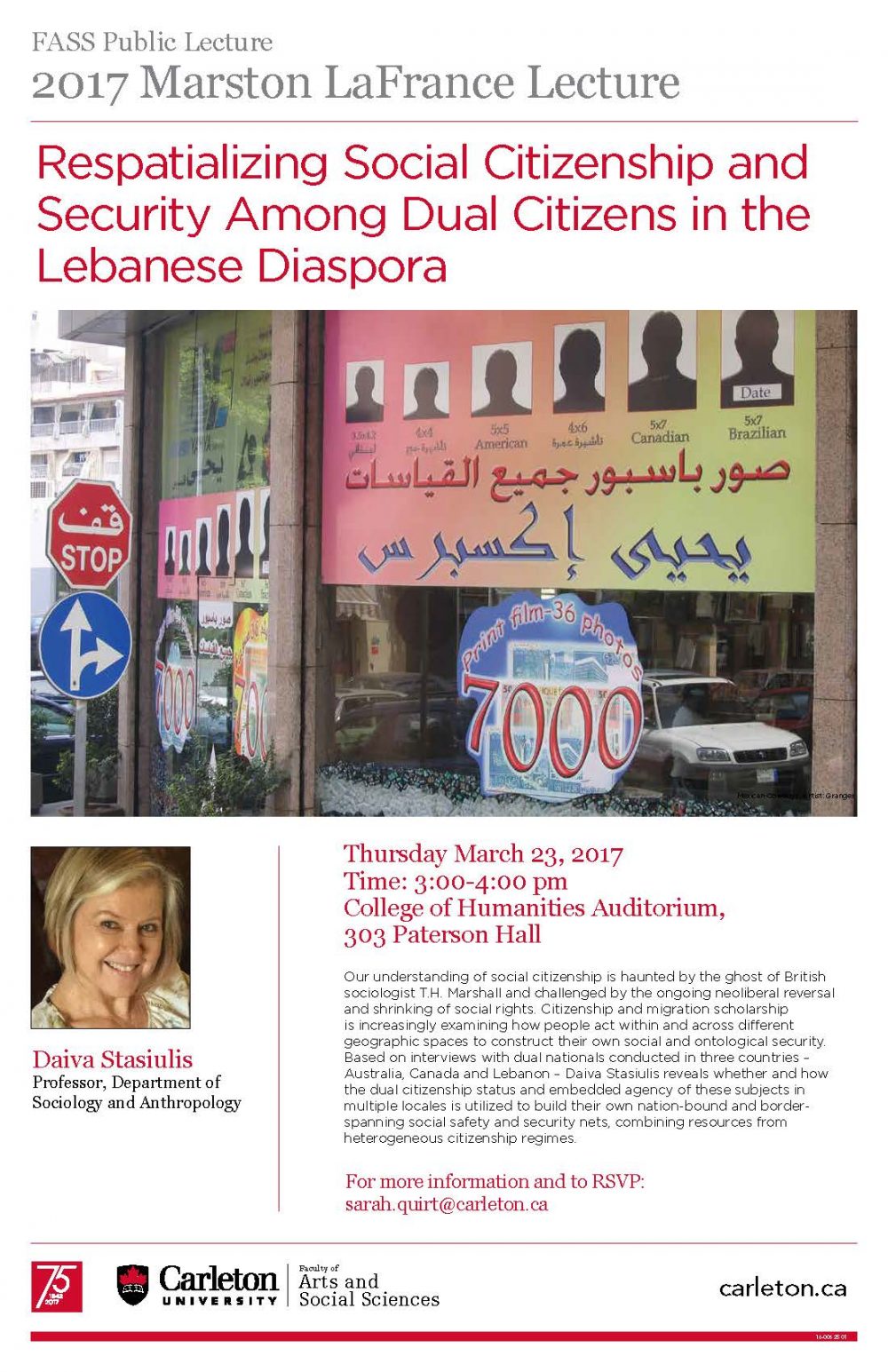 2017 Marston LaFrance Lecture, Social Citizenship and Security Among Dual Citizens in the Lebanese Diaspora