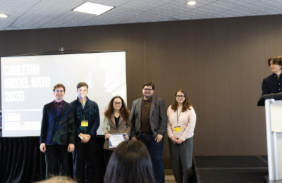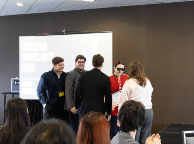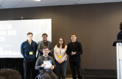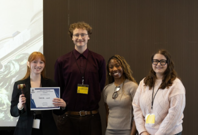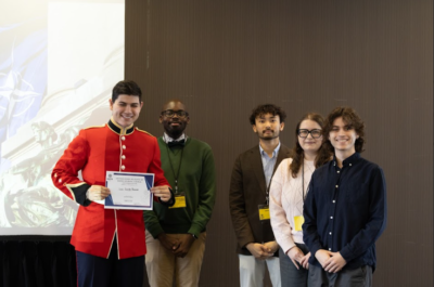 (Photos with the Military Committee Chairs- Jared Gagne, Chris Merrick, Ezra Zabawny-Gilman, and Secretary General Julia Khodos)