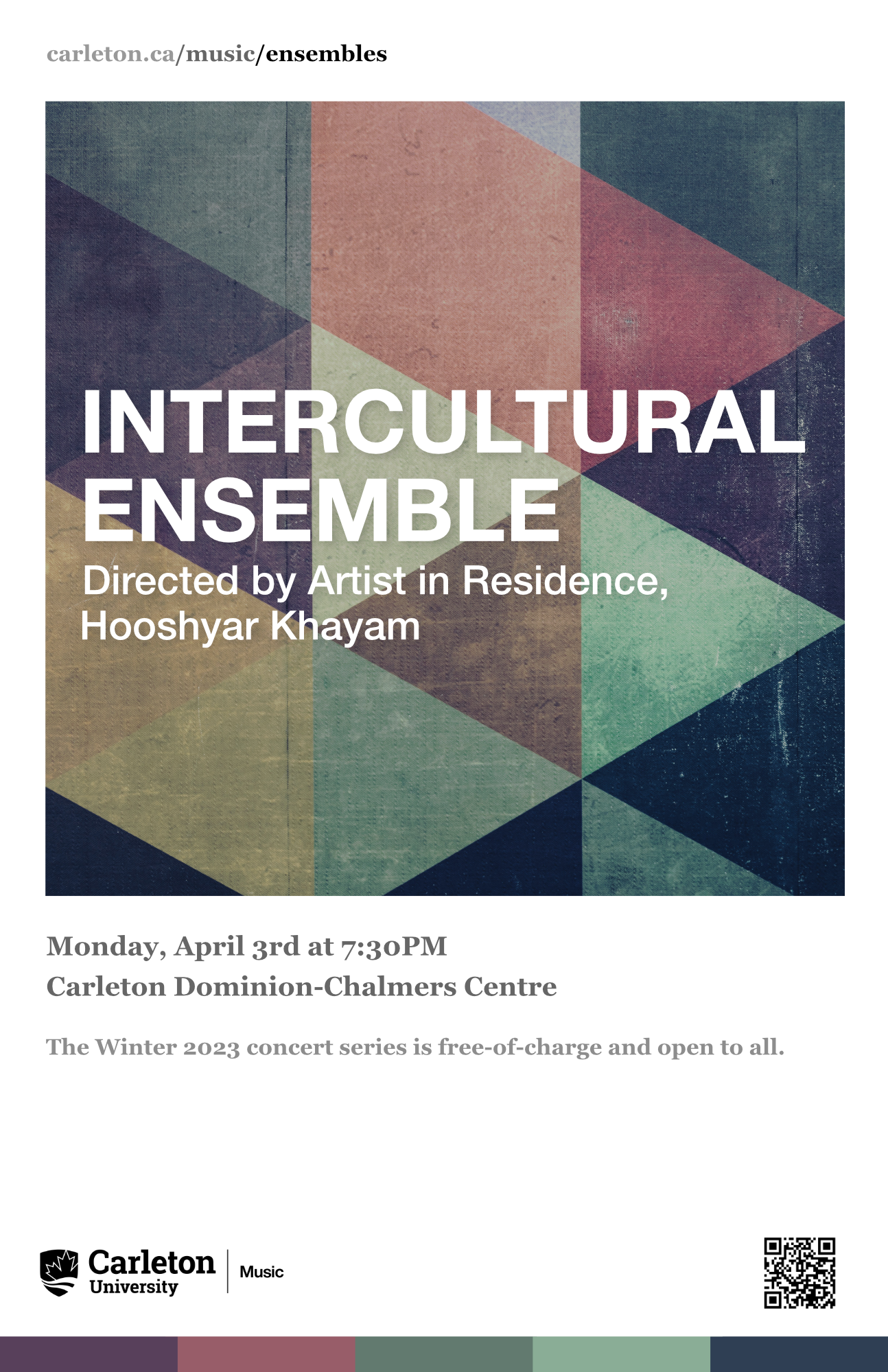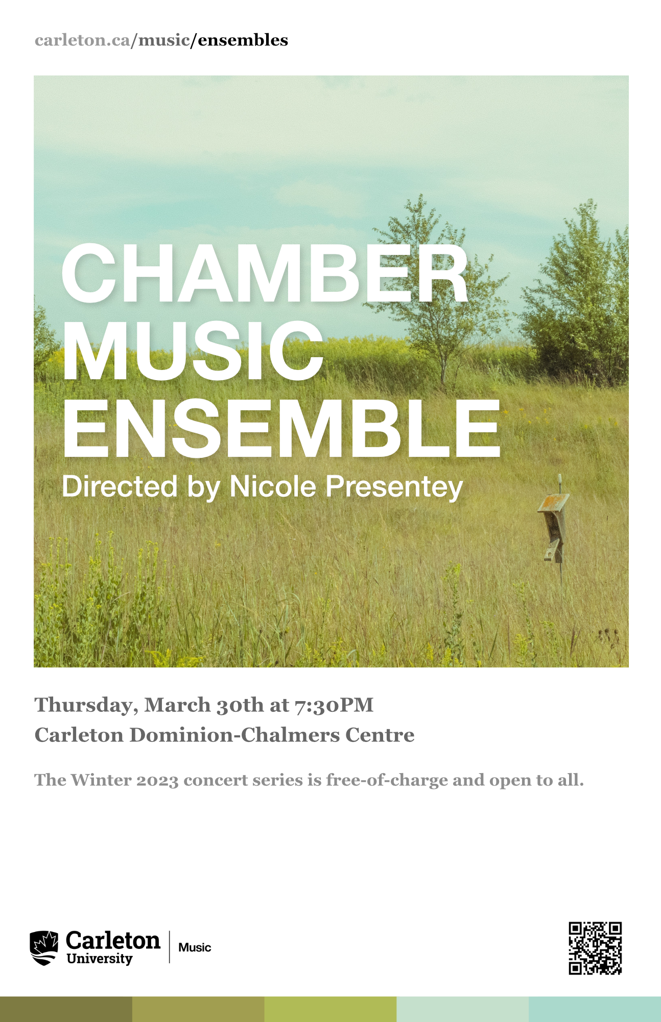 Carleton Music welcomes Spring with a diverse schedule of live performances, taking place at the Carleton Dominion-Chalmers Centre, Kailash Mital Theatre and House of Targ. Join us for nine events, showcasing eleven groups of musicians. Admission to the Spring series is free, but seating is limited. Most concerts will also be live streamed live on our YouTube channel.