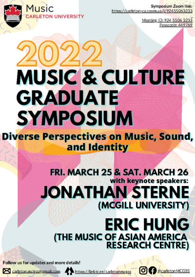 With keynote speakers Jonathan Sterne (McGill University) and Eric Hung (The Music of Asian America Research Centre).