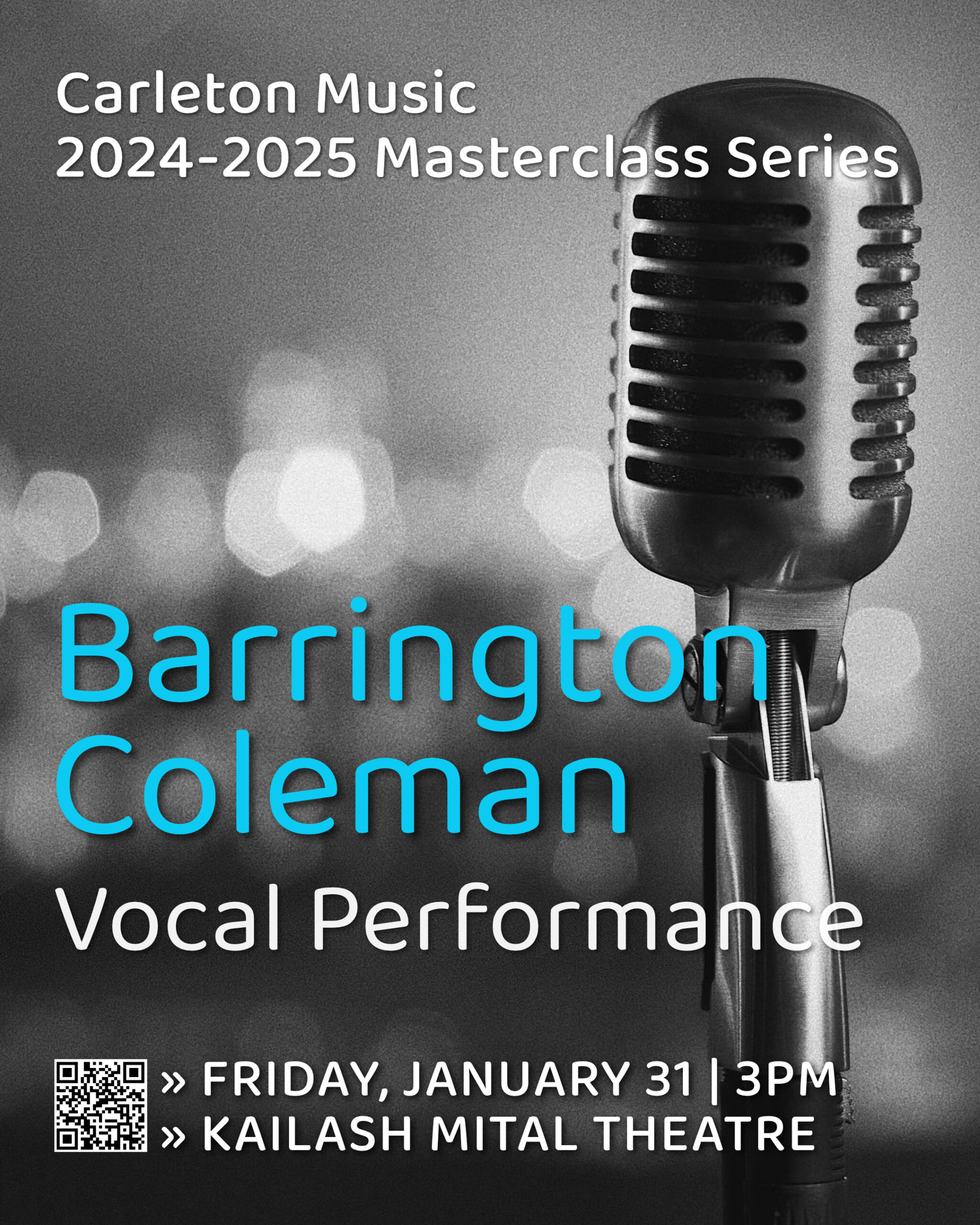 Promotional graphic for Barrington Coleman vocal performance masterclass.