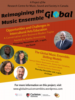 Reimagining the Global Music Ensemble is a two-year project that seeks to broaden the artistic vision and leadership of Carleton’s West African Rhythm Ensemble, motivated by current major cultural shifts including the Black Lives Matter movement. The project will gather together ensemble directors, educators, researchers, faculty, students, musicians, and the general public, to critically examine representation, roles and structures in post-secondary “world music” ensembles. Through collaborative discussion we will explore established and emerging models towards improving and expanding experiential learning opportunities for students at Carleton.