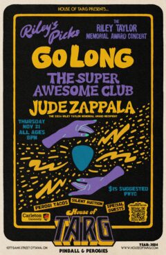The initial response from the community has been very generous, and so the family is now fundraising for a second award to benefit an incoming Music student. “Riley’s Picks” is a concert fundraiser on Thursday November 21st at House of Targ (1077 Bank St).