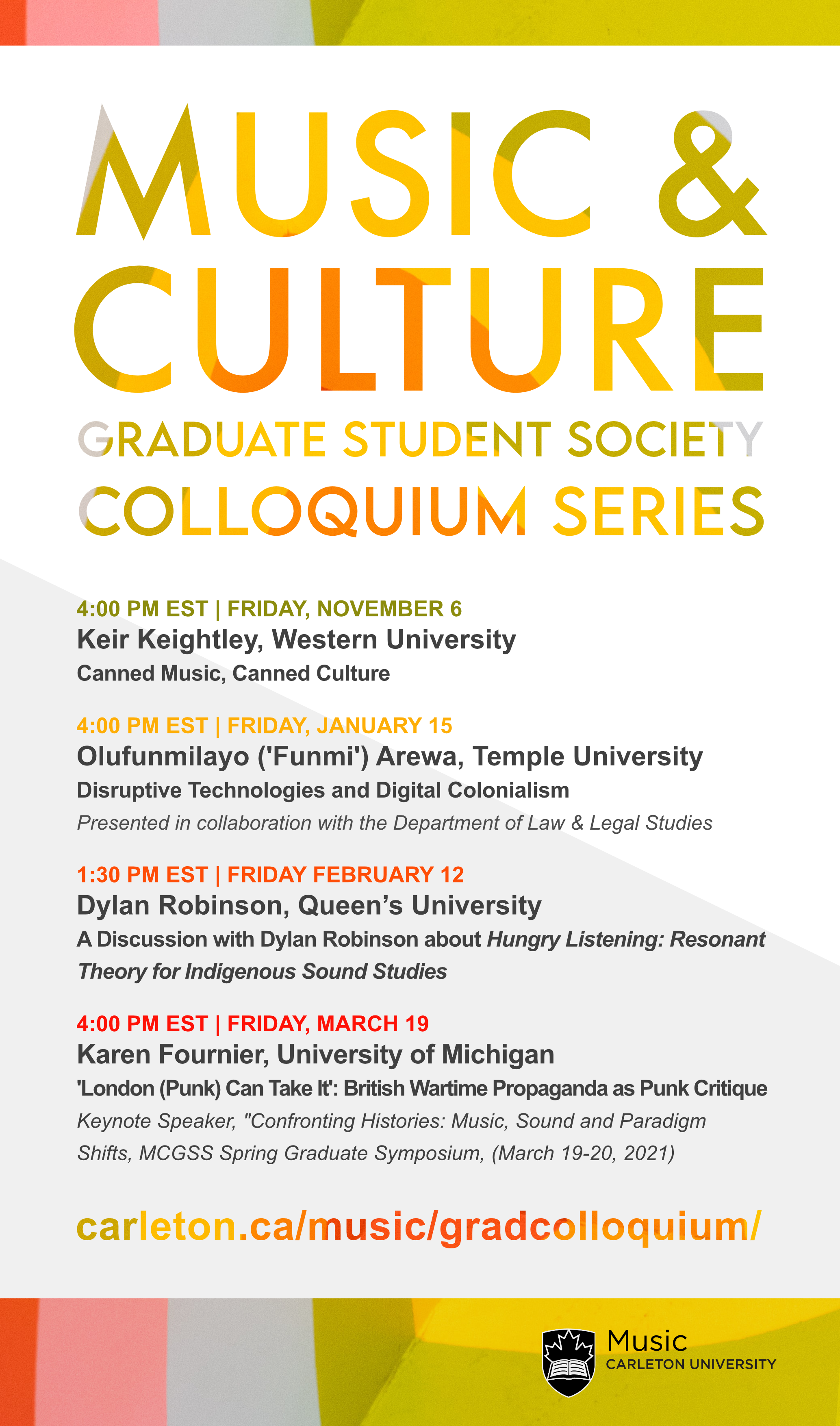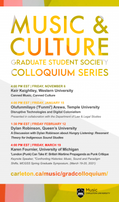 Keynote Speaker, “Confronting Histories: Music, Sound and Paradigm Shifts, MCGSS Spring Graduate Symposium, (March 19-20, 2021)
