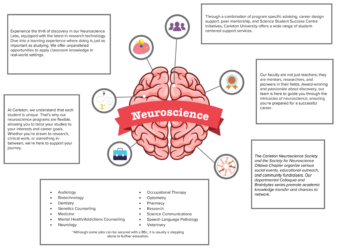 Carleton’s Department of Neuroscience is a hidden gem where curiosity takes shape and ambition becomes discovery. From your first class to your final presentation, you’ll learn alongside passionate faculty who are not only dedicated mentors but also active researchers. With a flexible program structure, you can easily tailor your studies to explore what fascinates you most whether it’s brain development, behaviour, or the biological basis of mental health.