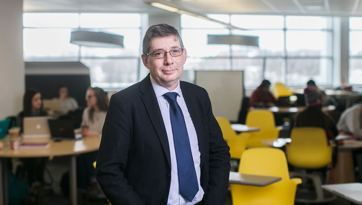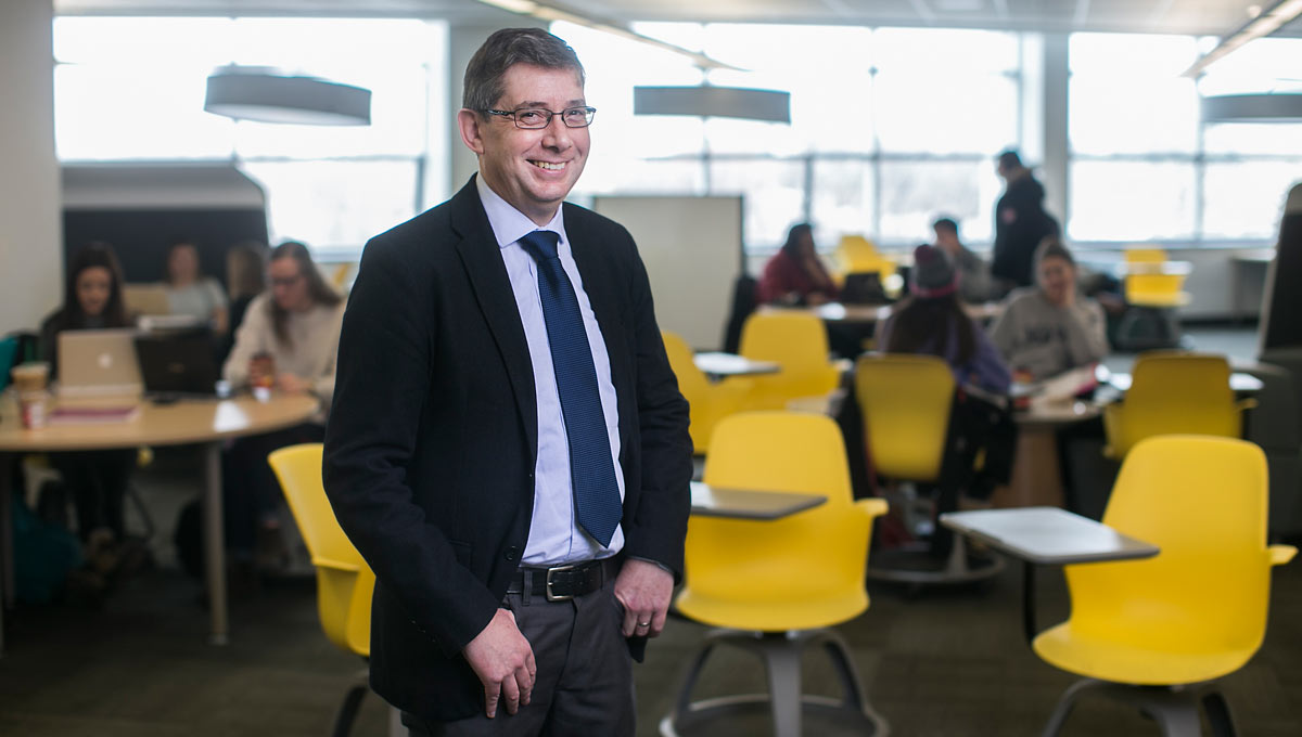 As director of the Discovery Centre for Undergraduate Research and Engagement, an informal learning space in the MacOdrum Library, Steele’s impact has moved even beyond his home department of Electronics in the Faculty of Engineering and Design. Tasked by the Provost to create a space that was collaborative and inclusive, Steele (along with librarian colleagues Margaret Haines and Valerie Critchley), came up with an environment that features flexible furniture arrangements, white boards, and large screen displays for students to hook up their laptops and gather around the same screen. Other additions include treadmill desks and 3D printers.