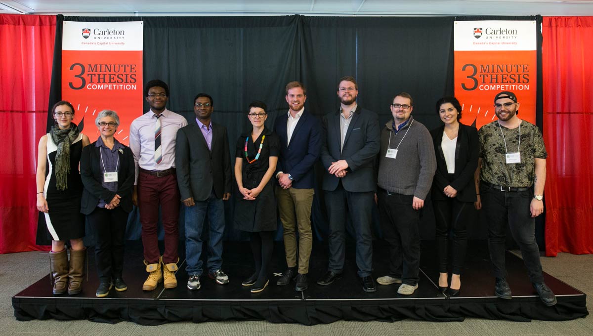 This year’s competition was judged by three outside experts: Dominique Bérubé, vice-president of research programs at the Social Sciences and Humanities Research Council of Canada; Ruth Zowdu, managing editor at CBC Ottawa; and Jeanette Southwood, vice-president of Strategy and Partnerships for Engineers Canada; as well as Don Cumming, Carleton’s director of communications.