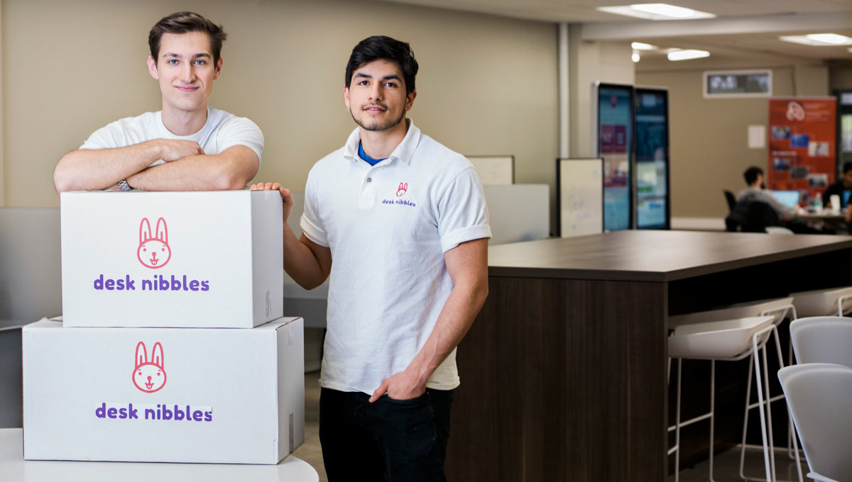 A company started by two Carleton University students, Emil Aite and Eric Kys, working with Carleton’s Lead To Win accelerator, has the solution. Called Desk Nibbles, it promises regular deliveries of healthy snacks to your workplace, no matter what the weather.
