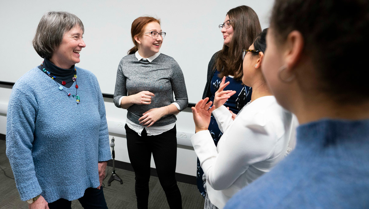 After deliberation, the judges commended the students for their impressive work and announced the team comprised of second-year Neuroscience students Jane Curtis and Mia Moroz, second-year Health Sciences student Kate Dervin and fourth-year Neuroscience student Kamaya Lawrence, as the winners with their project First Nations recovery: the road to recovery starts in the past.