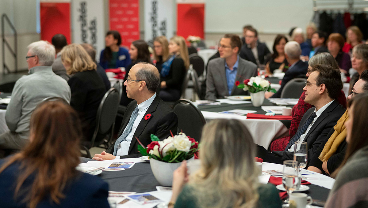 The breakfast gathering at Carleton on Nov. 12, 2018 served as the kickoff for a weeklong series of university open houses across the country, when parliamentarians and other elected officials visit campuses to see first-hand the impact of investments in research.