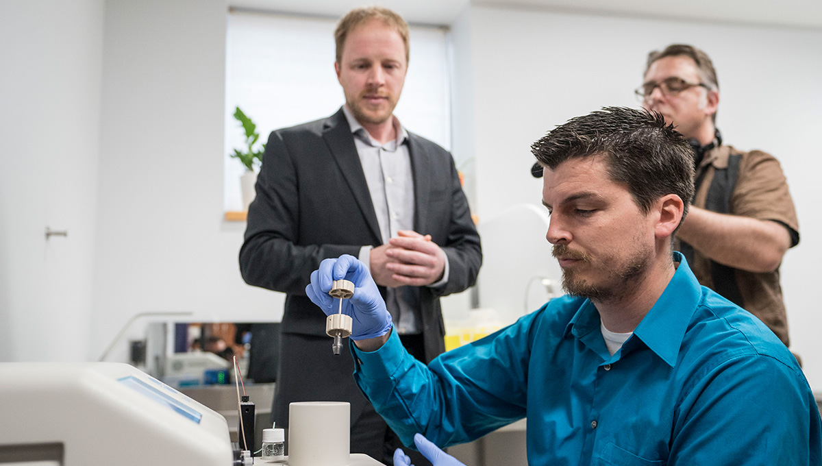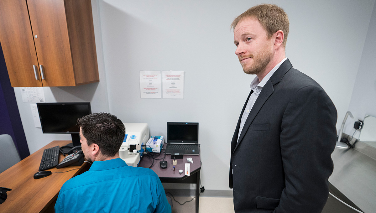In the Sandy Hill supervised injection site, which resembles a doctor’s examination room, CMSC lab manager Karl Wasslen dips a wand with a small loop on the end into a drop of liquid on a microscope slide.
