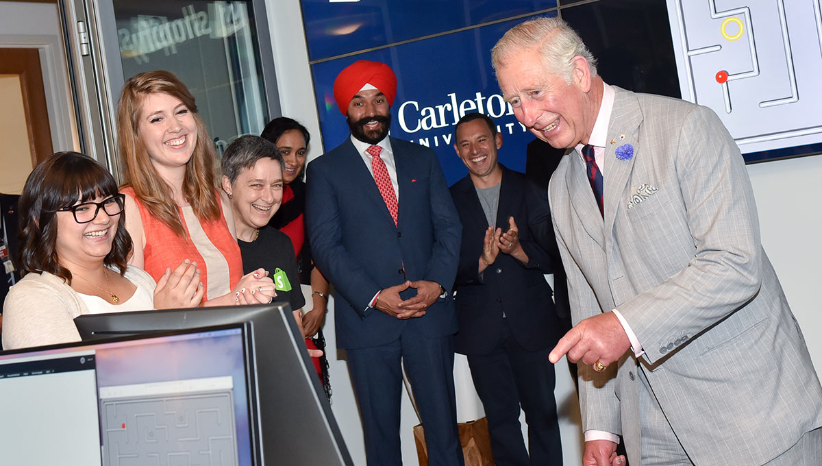 Highlighting their growing knowledge and skill, one Carleton intern gave Prince Charles a demonstration of a student-built maze video game.
