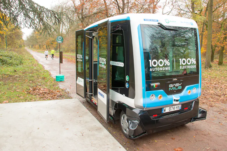 In a model being explored by many scholars and experiments in Europe, the autonomous vehicle that picks you up on your way to the movie theatre would be more like a last-mile shuttle for public transit.