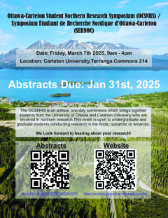 We are now accepting abstracts for the Ottawa-Carleton Student Northern Research Symposium (OCSNRS), hosted by Carleton University on March 7, 2025.