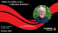 Prof. Brook: Carleton has done well in the Rhodes competition for such a young university. Good students! Six Carleton students have been winners, including one this year (Maeve Collins-Tobin). They have been elected from B.C., the Prairies, Quebec, and Newfoundland, as well as Ontario of course. (One can apply where one grew up as well as where one went to school.) My advice to someone thinking of applying? Pay close attention to the guidelines on the Rhodes and the Canadian Rhodes pages, including the criteria by which applications are assessed—the Rhodes programme takes its goal of making the world a better place extremely seriously. Then come and talk to me.