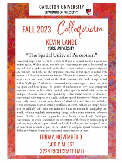 We will be joined by Kevin Lande, of York University, who will be discussing his research titled, “The Spatial Unity of Perception”.