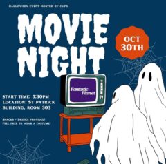 Come join us in St Patrick Building Room 303 on October 30th @ 5:30pm where we will be watching ‘Fantastic Planet’ – a French animated sci-fi film that explores themes of power, oppression and freedom. See the poster attached for more information!