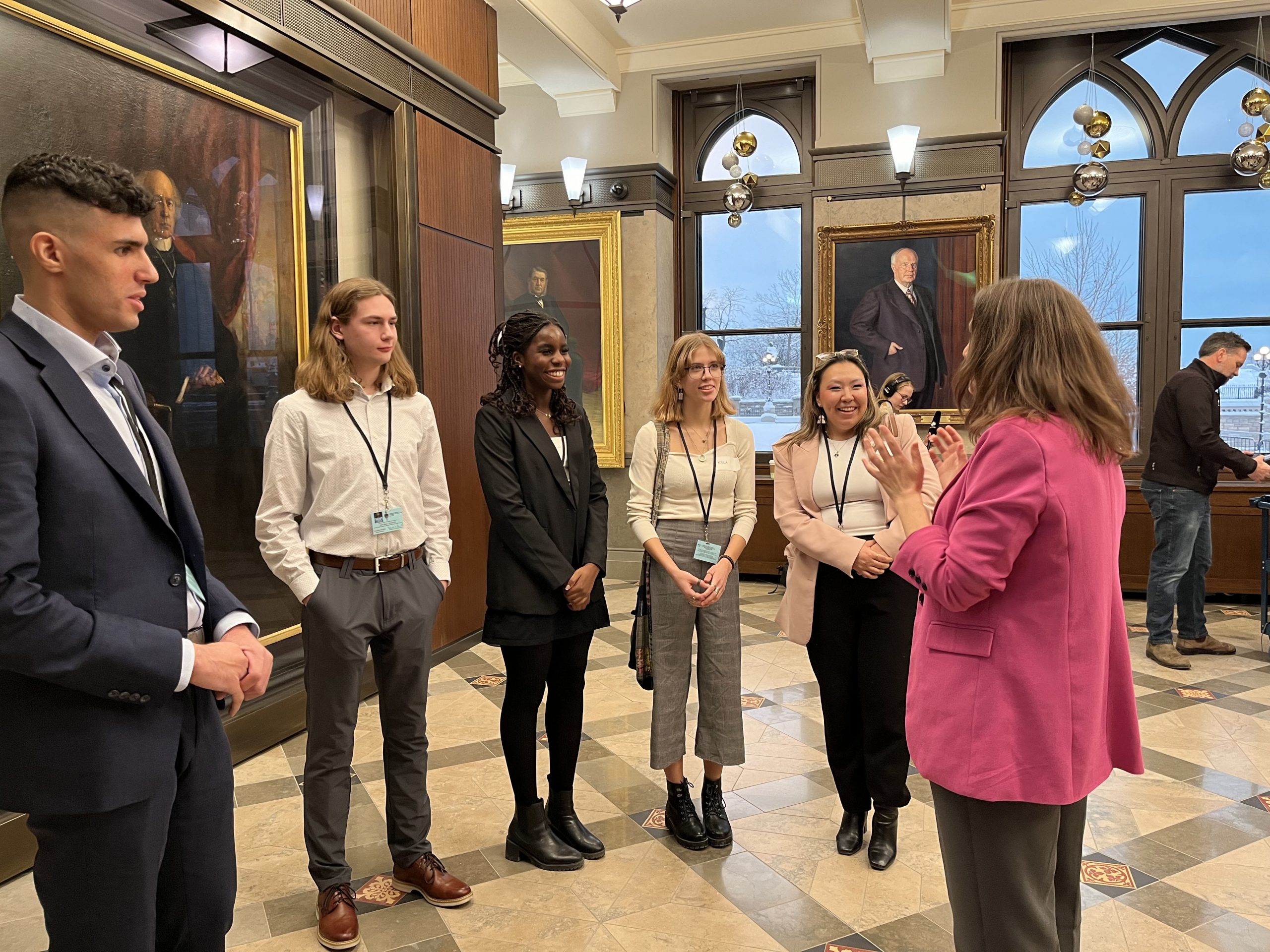 CBC Host Catherine Cullen led five students from the first year class PSCI 1100 on a tour of Parliament for a special edition of the show “The House”. Students were able to ask politicians some fundamental questions to learn more about how Parliament works. They gained insight into what MP’s and Senators actually do, what is the point of a Parliamentary Committee, how to ask a good question in Question Period, and witnessed a PM scrum.