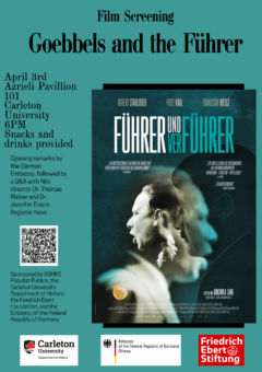 On April 3rd, the History Department will host a public screening of the newly released film GOEBBELS and the FÜHRER. This compelling historical drama tells the story of Joseph Goebbels, Nazi Germany’s propaganda minister, and his role in building public support for the Holocaust and World War II
