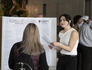 This annual celebration of student achievement involves our 4th-year Undergraduate Honours students sharing their capstone research via poster presentations. This has become Carleton’s largest undergraduate research event. To help with this celebration of student achievement, we welcome fellow students and their families, members of the Department, and the University community to attend.