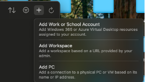 Once you installed the Microsoft Windows App, you can create a new connection to a PC. Click on the plus sign in the top right corner, and select “Add PC”.