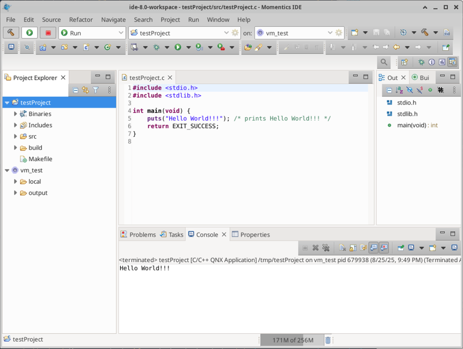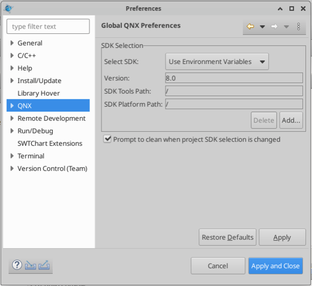 QNX Momentics: /usr/local/bin/qnx/qnxmomenticside/qde