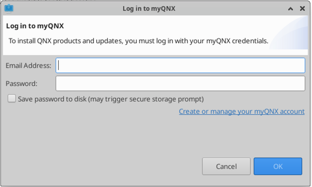 * Note: You still require a QNX account, which will be required when opening the QNX Software Center. Follow the instructions provided in your course to acquire a QNX license, or through QNX Everywhere.