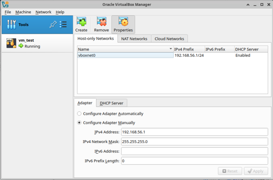With Virtualbox open, click the list icon beside tools, and select Network. Then click “Create”, to create a network. Make sure DHCP is enabled.