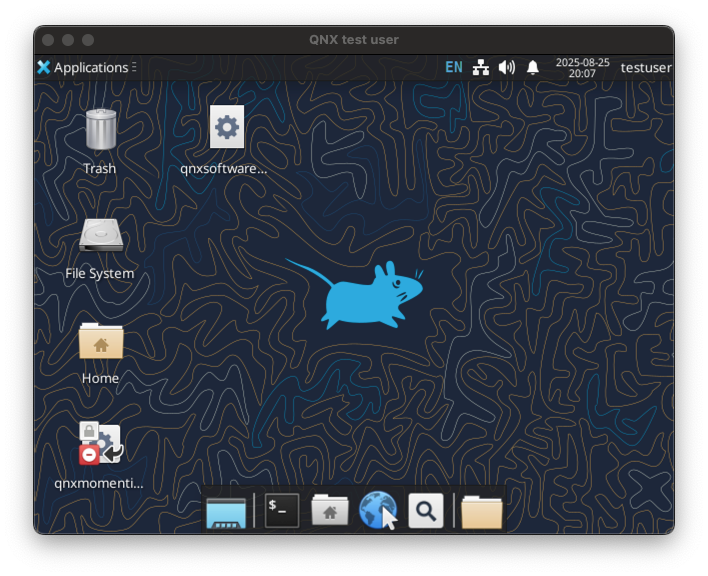 Both QNX Software Center and QNX Momentics IDE are available in your desktop (soft links pointing to the default locations mentioned above).