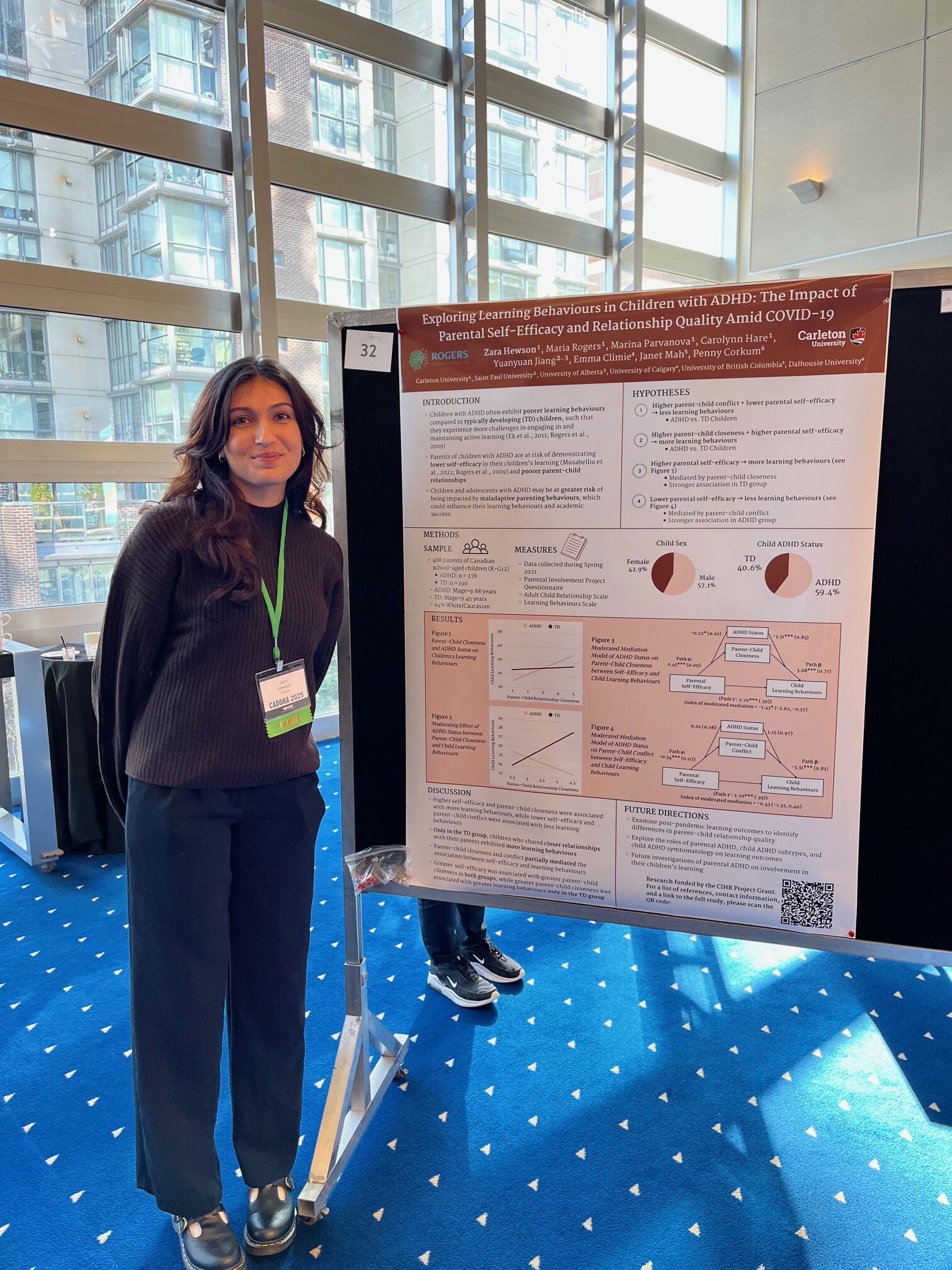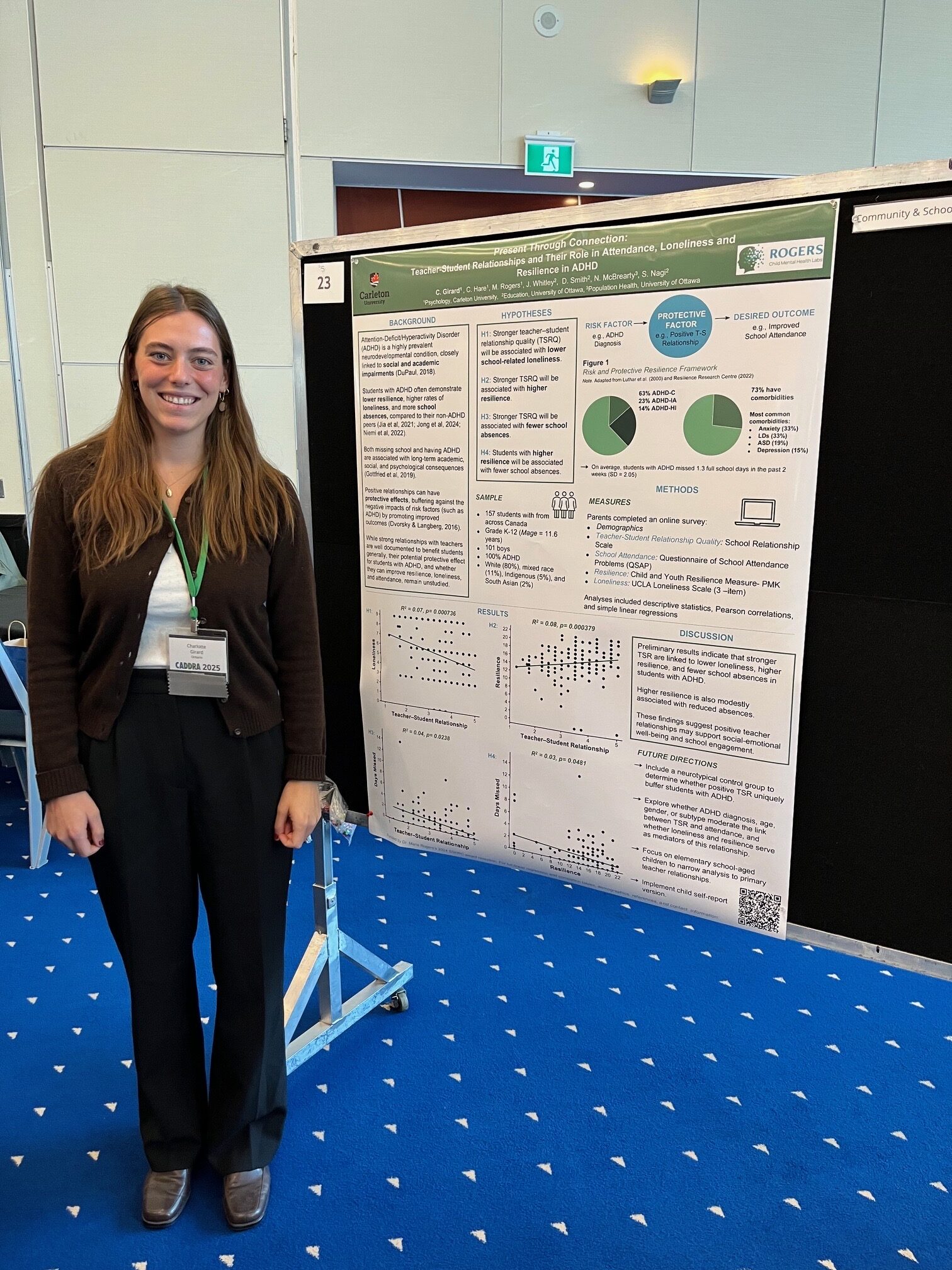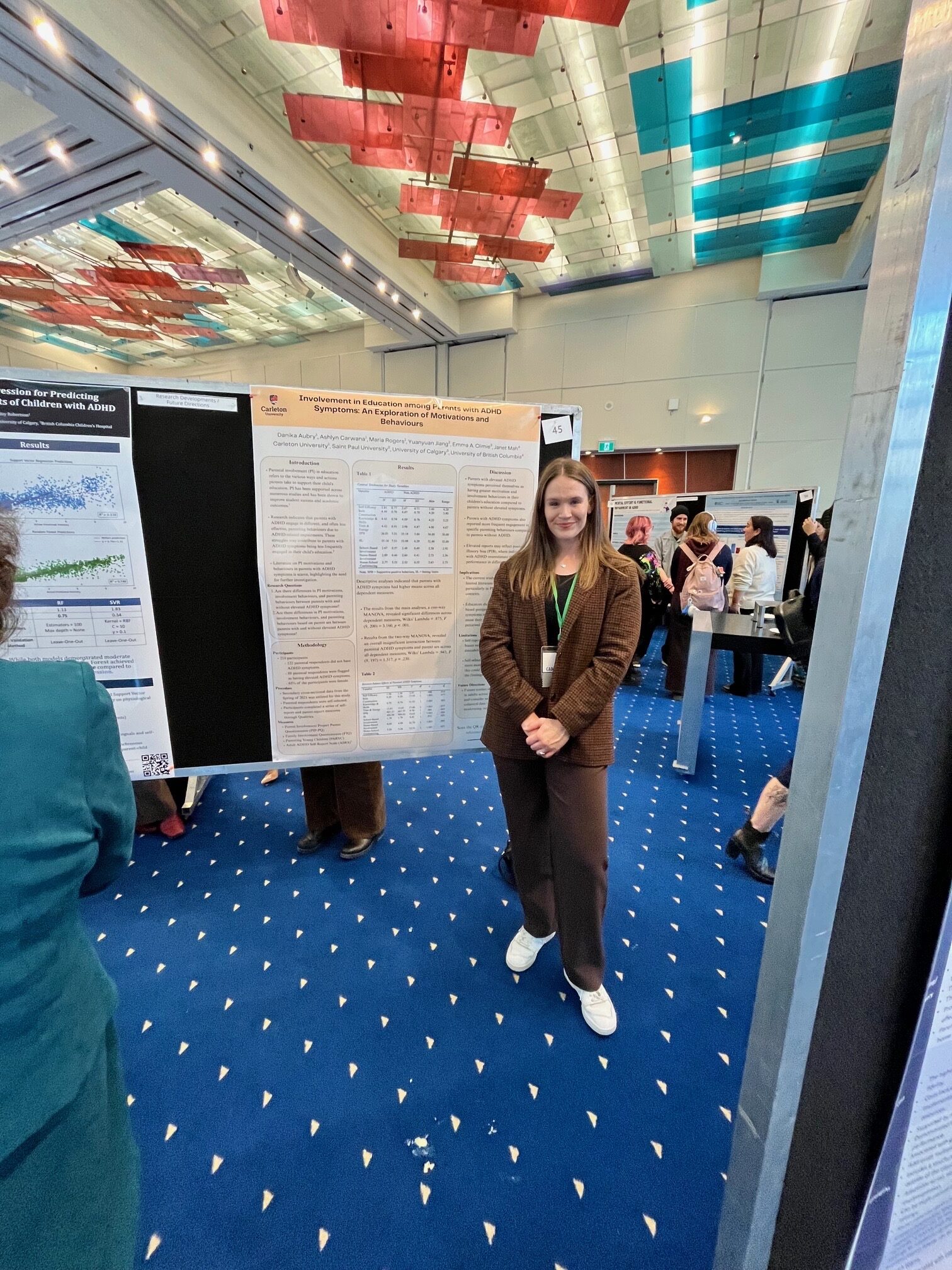 Carolynn delivered an oral presentation titled “Sensory Sensitivity, School Relationships, and Loneliness in Youth with ADHD,” while Charlotte, Zara, and Danika showcased their work through poster presentations highlighting ongoing projects in the lab.